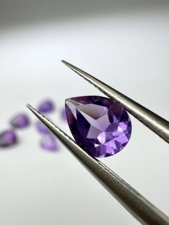 - Ametyst naturalny fasetowany gruszka 8 x 6 mm. Masa kamienia naturalnego ok. 1,05 ct./szt. Posiada mało widoczne inkluzje