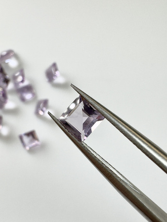 - Ametyst naturalny fasetowany kwadrat 5 x 5 mm. masa kamienia naturalnego ok. 0,55 ct./szt.