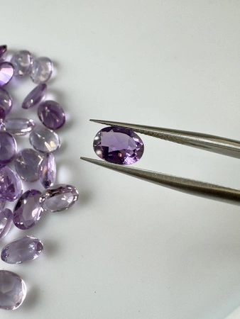 - Ametyst naturalny fasetowany owal 7 x 5 mm. masa kamienia naturalnego ok. 0,76 ct./szt.