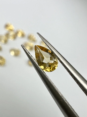 - Cytryn gruszka ok. 5x3 mm. Masa kamienia naturalnego ok. 0,2 ct./szt. Posiada mało widoczne inkluzje.