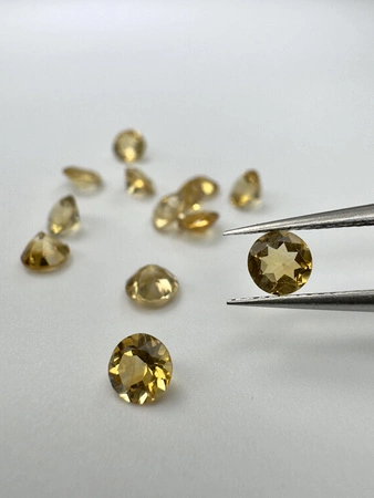 - Cytryn naturalny fasetowany okrągły fi 4 mm. Masa kamienia naturalnego ok. 0,22 ct./szt. Mało widoczne inkluzje.