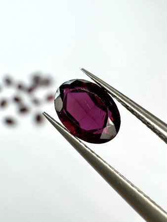 - Granat rodolit naturalny fasetowany owal 7 x 5 mm. masa kamienia naturalnego ok. 1,24 ct./szt.
