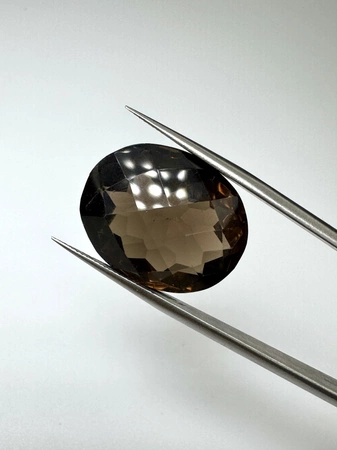- Kwarc dymny naturalny fasetowany owal 20,75 x 16,95 x 11,32 mm. Masa kamienia naturalnego ok. 23,45ct./szt.