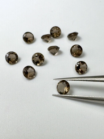 - Kwarc dymny okrągły ok. 4 mm. masa kamienia naturalnego ok. 0,25 ct./szt.