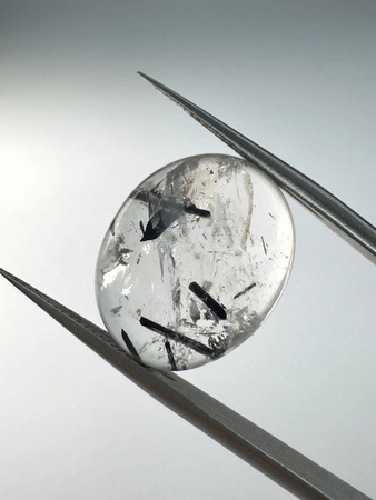 - Kwarc z wrostkami rutylu owal kaboszon 29 x 20 x 6,87 mm. Masa kamienia naturalnego ok. 13,02 ct./szt.