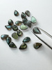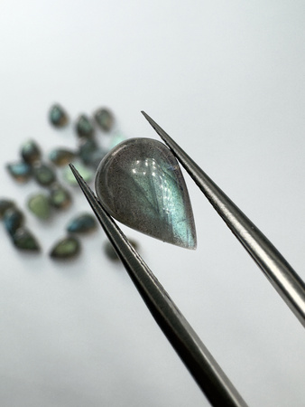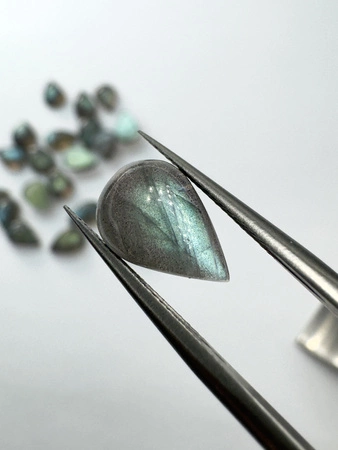 - Labradoryt naturalny kaboszon gruszka 12 x 8 mm. masa kamienia naturalnego ok. 2,93 ct./szt.