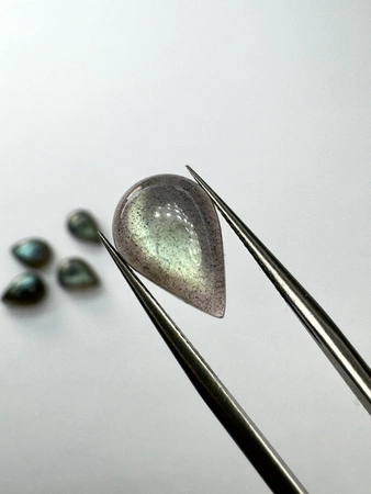 - Labradoryt naturalny kaboszon gruszka 13 x 9 mm. masa kamienia naturalnego ok. 4,76 ct./szt.