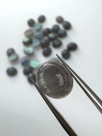 - Labradoryt naturalny kaboszon owal 11 x 9 mm. masa kamienia naturalnego ok. 3,69 ct./szt.