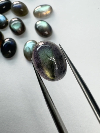 - Labradoryt naturalny kaboszon owal 14 x 10 mm. masa kamienia naturalnego ok. 5,64 ct./szt.