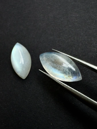 - Moonstone rainbow naturalny kaboszon kamień księżycowy para markiza 14,1x7,2 mm. Masa kamienia 3,63 ct/szt.