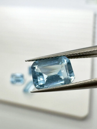 - Niebieski topaz oktagon fasetowany 8x6 mm. Masa kamienia 1,79 ct/szt.