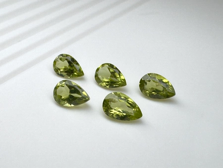 - Perydot oliwin gruszka ok. 6x4 mm. masa kamienia naturalnego ok. 0,41 ct./szt.