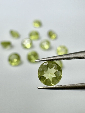 - Perydot oliwin okrągły ok. fi 4 mm. masa kamienia naturalnego ok. 0,26ct./szt.Kamienie posiadają naturalne mało widoczne inkluzje.
