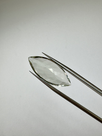 - Prasiolit naturalny fasetowany markiza 26 x 11 mm. masa kamienia naturalnego ok. 12,48 ct.
