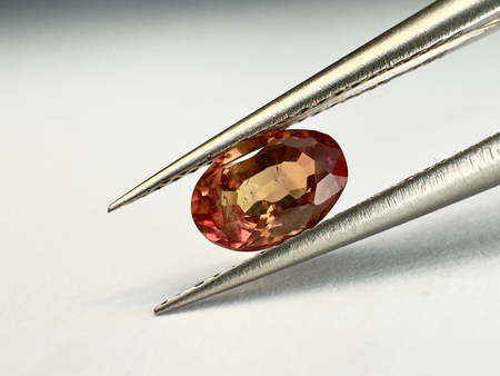 - Szafir ciemnopomarańczowy owal o wymiarach 4.03 x 6.03 x 2.82 mm. masa kamienia naturalnego ok. 0,66 ct./szt.