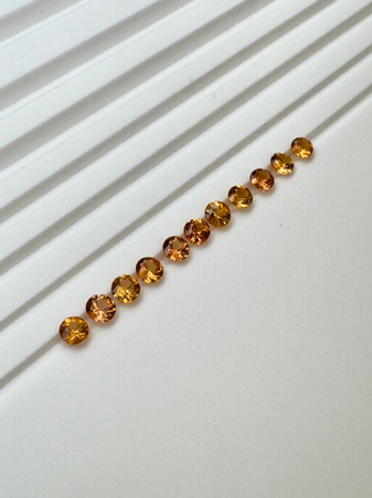 - Pomarańczowy szafir okrągły ok. 3 mm. masa kamienia naturalnego ok. 0,1373 ct./szt.
