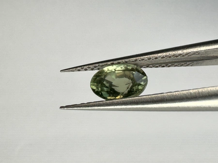 - Szafir zielonyowal o wymiarach 4.12 x 5.83 x 3.36 mm. masa kamienia naturalnego ok. 0,71 ct./szt.