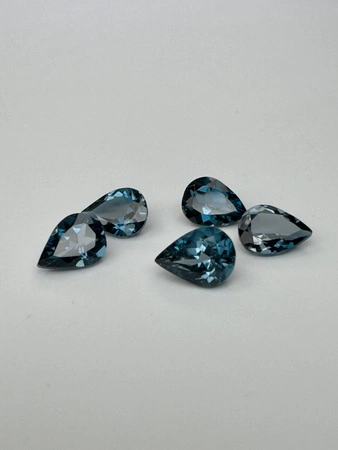 - London blue topaz gruszka 8x6 mm. Masa kamienia naturalnego ok. 1,34 ct./szt.