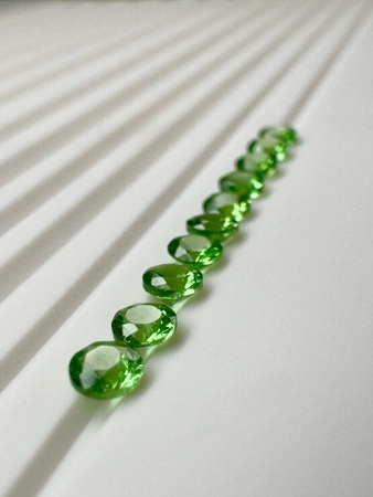 - Zielony tsavoryt okrągły ok. 3 mm. masa kamienia naturalnego ok. 0,1345 ct./szt.