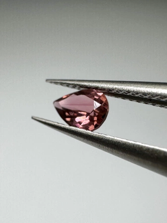 - Turmalin naturalny fasetowany różowy gruszka 5,80 x 3,80 mm. Masa kamienia naturalnego ok. 0,32ct./szt.