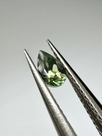 - Turmalin naturalny fasetowany zielony gruszka 4,77 x 2,80 mm. Masa kamienia naturalnego ok. 0,24ct./szt.