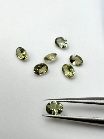 - Turmalin naturalny fasetowany zielony owal 4x3 mm. Masa kamienia naturalnego ok. 0,17ct./szt.